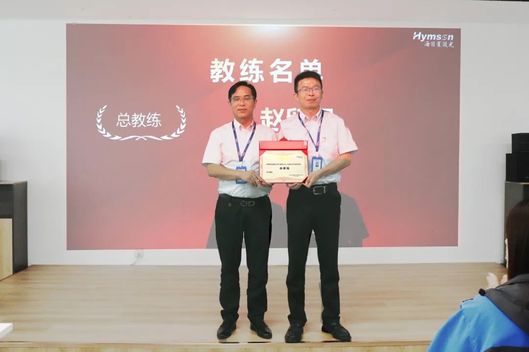 為更好地助力學員學習轉化,本次訓練營特選定5位教練全程陪伴賦能。他們分別是:總教練—江蘇海目星副總經(jīng)理趙留強;專業(yè)教練—LEBG第二事業(yè)部華東供應鏈李文標、李文良、李瑞,光伏事業(yè)群廖雪飛。周總、楊總分別為5位教練頒發(fā)聘書。一紙聘書代表的是一份責任,教練們將在后期的學習中全力給予指導與支持。