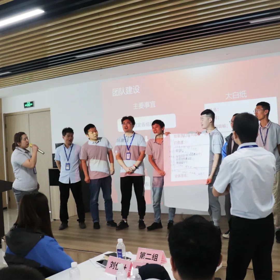 之后,各小組通過團隊學習比拼,聚焦團隊力量,共同成長。對了,悄悄告訴大家,小組最后一名將獲得全員50個俯臥撐的“勵志獎勵”喲~