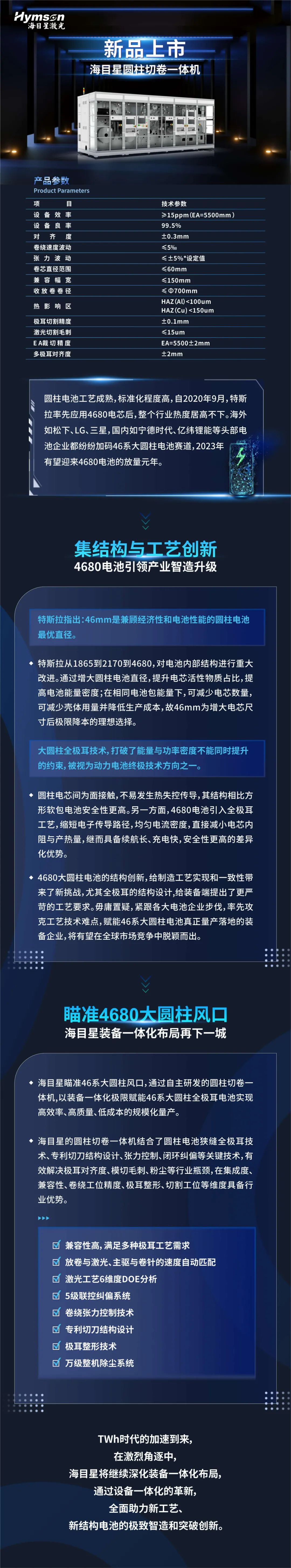 集新設(shè)計新技術(shù)于一身,海目星圓柱切卷一體機耀目啟航